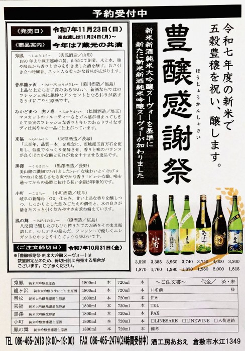 酒工房あおえ 〒710-0802 岡山県倉敷市水江1349 TEL 086-465-2413 FAX 086-465-2474